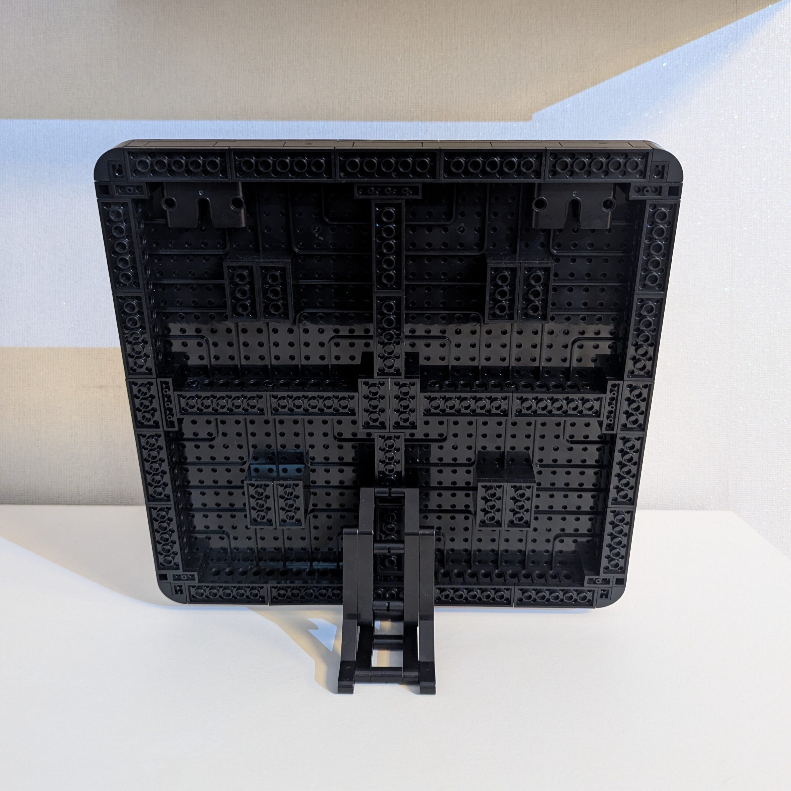 Das Mosaik besteht aus 1151 passgenauen Klemmbausteinen. Der umlaufende schwarze Rahmen mit abgerundeten Ecken gewährleistet Stabilität und eine saubere Einfassung des Motivs.