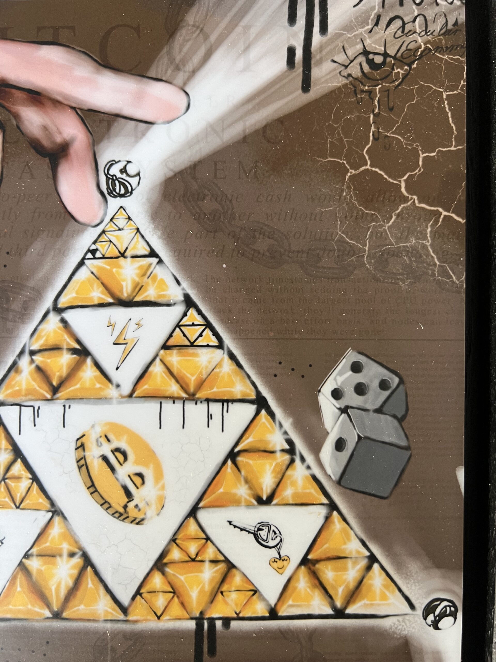 Jedes Detail in diesem Artwork hat seinen Zweck. Manche Bedeutungen sind tief, andere ganz einfach. Aber nichts ist zufällig, genau wie Bitcoin, genau wie das Leben.