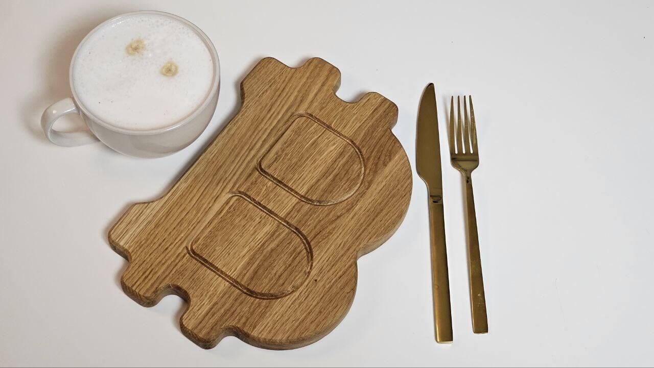 Frühstücksbretter aus massiver Eiche – Bitcoin Design