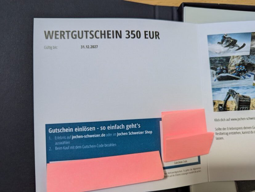 Gutschein Code kann ich direkt übermitteln. Versand der Geschenkbox nicht notwendig.