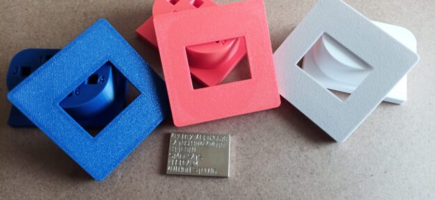 Wenn man seine 24 Wörter verkürzt hat man auf einer Seite genug Platz. Damit es etwas einfacher wird habe ich die jeweils ersten Zeichen mit einer Vertiefung Markiert. So muss man nicht jedesmal neu das Zählen beginnen.