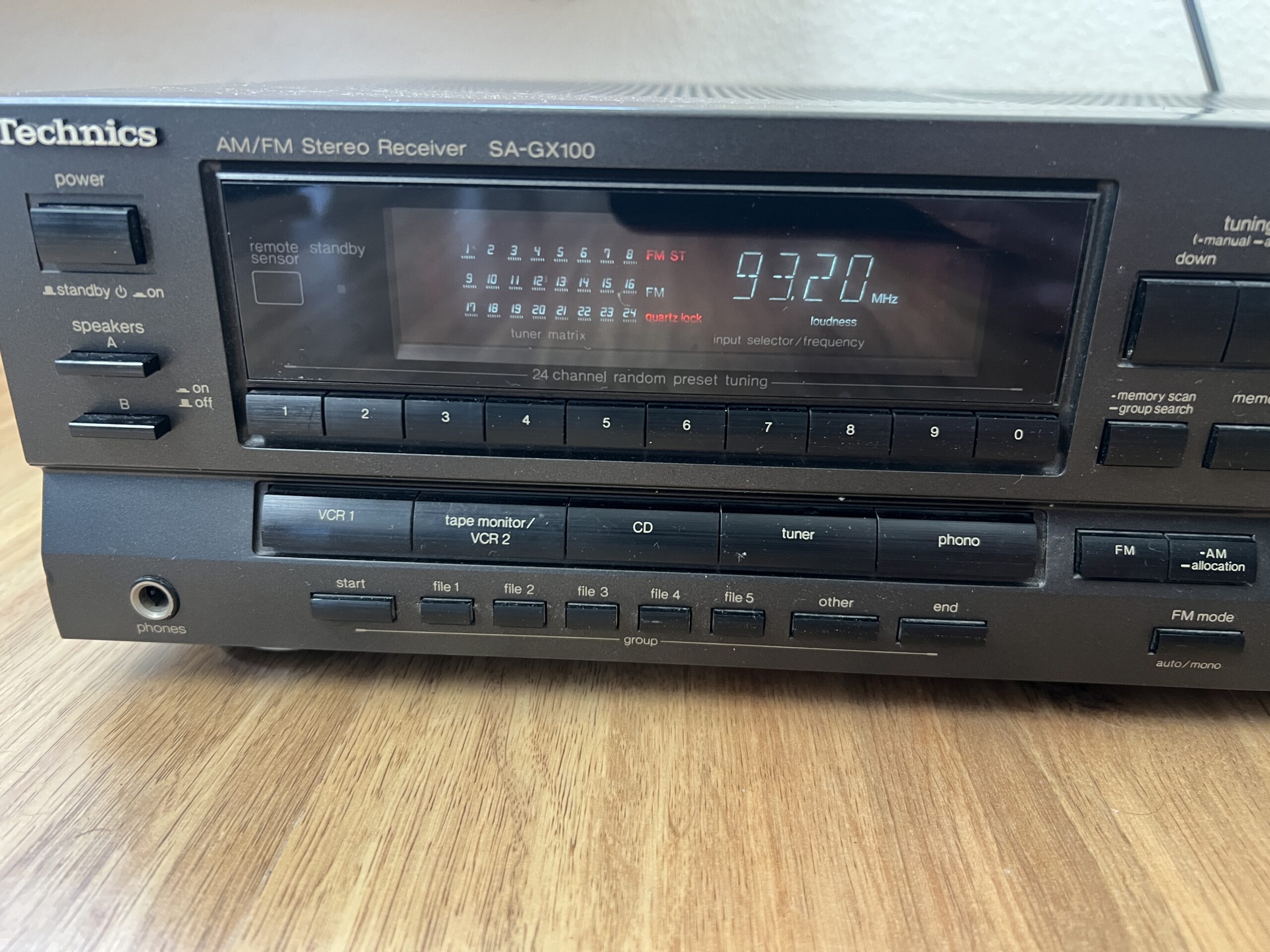 Sehr gut erhaltener Technics Receiver SA-GX100, Made in Japan, Qualität aus den 1990er Jahren.