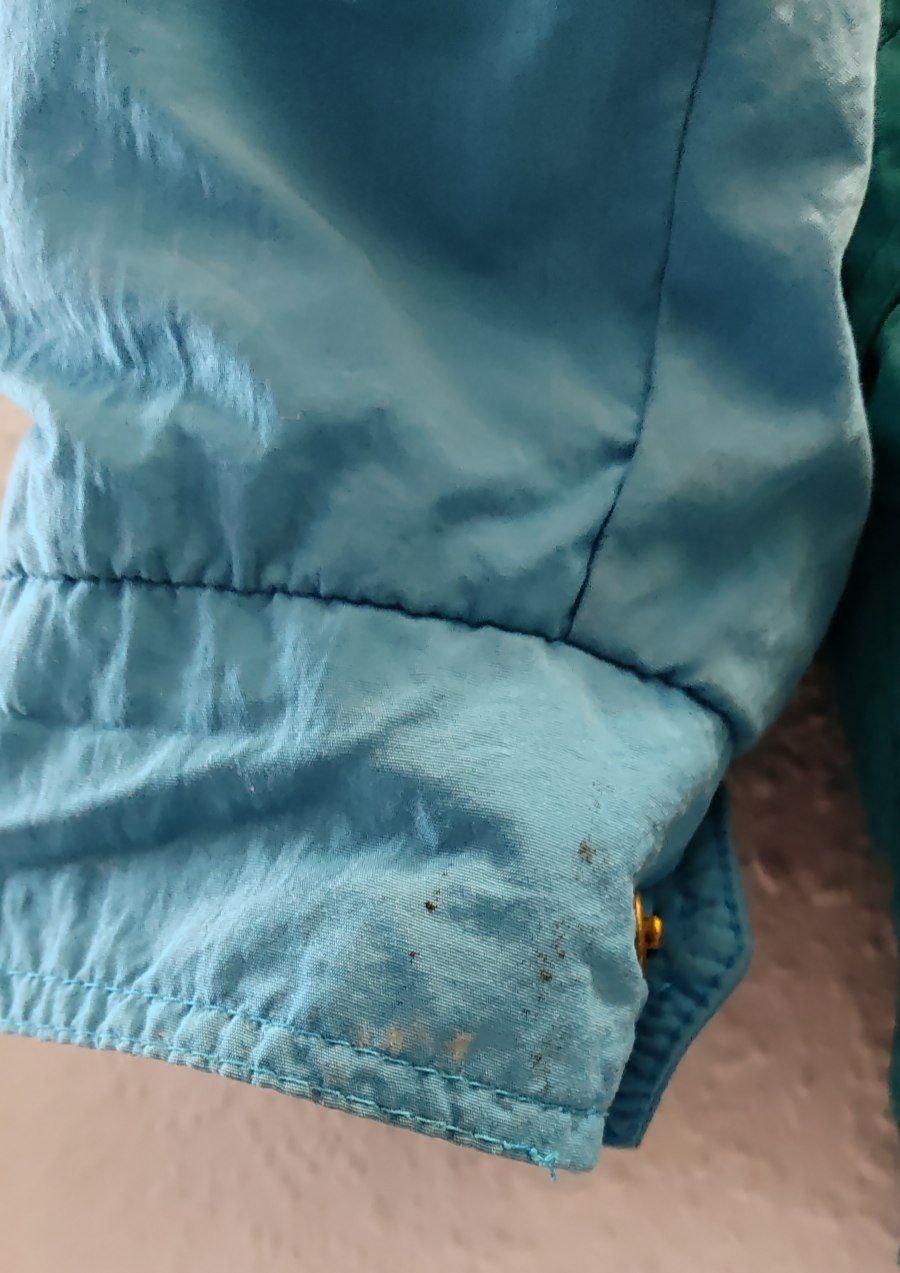 Gut erhalten, an den Ärmeln gibt es Flecken. Die Kapuze fehlt leider.