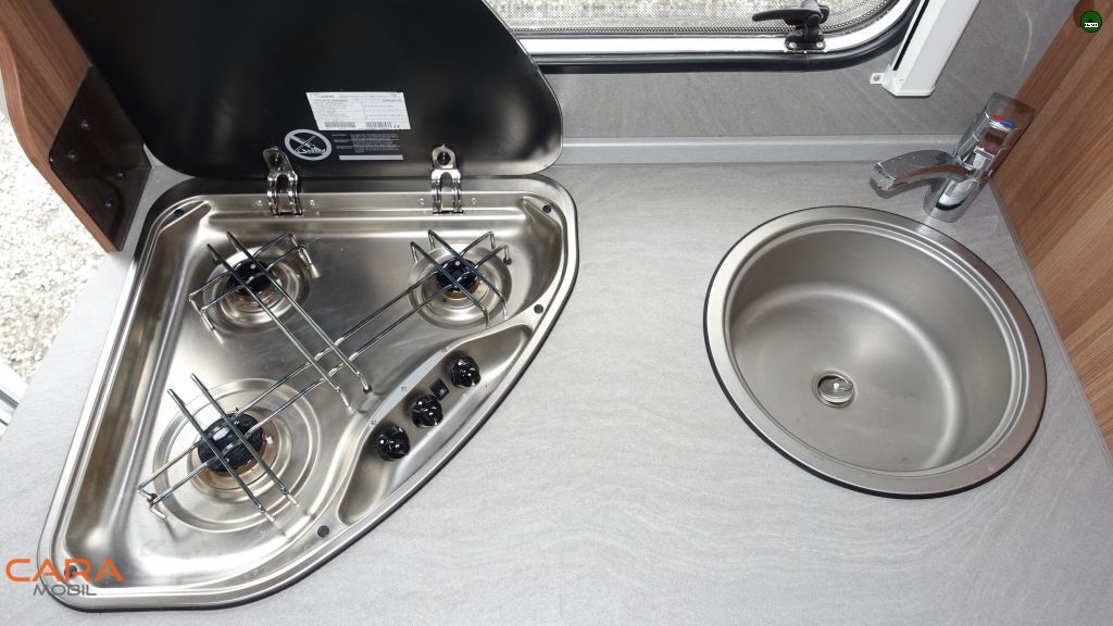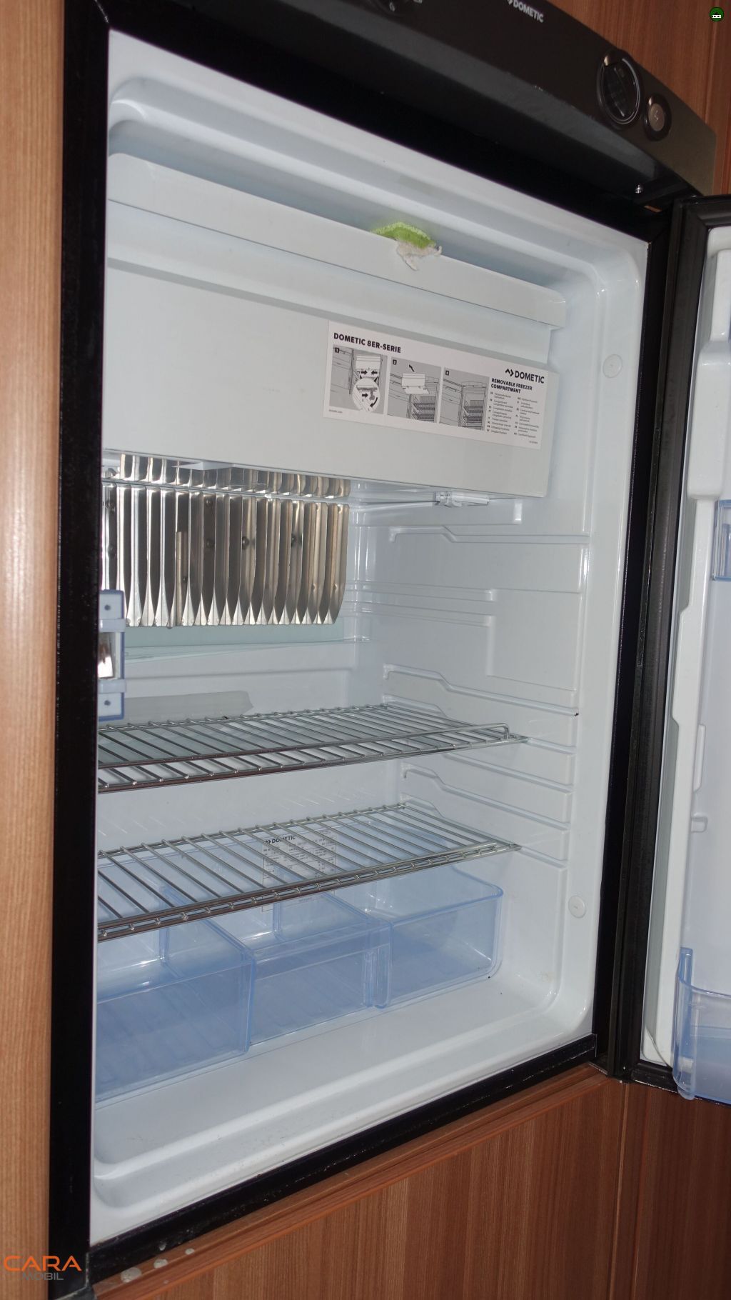 * Absorber-Kühlschrank (Gas / 12V / 230V) ca. 106 Liter mit kleinem Eisfach (wir sind als Familie damit immer gut ausgekommen)