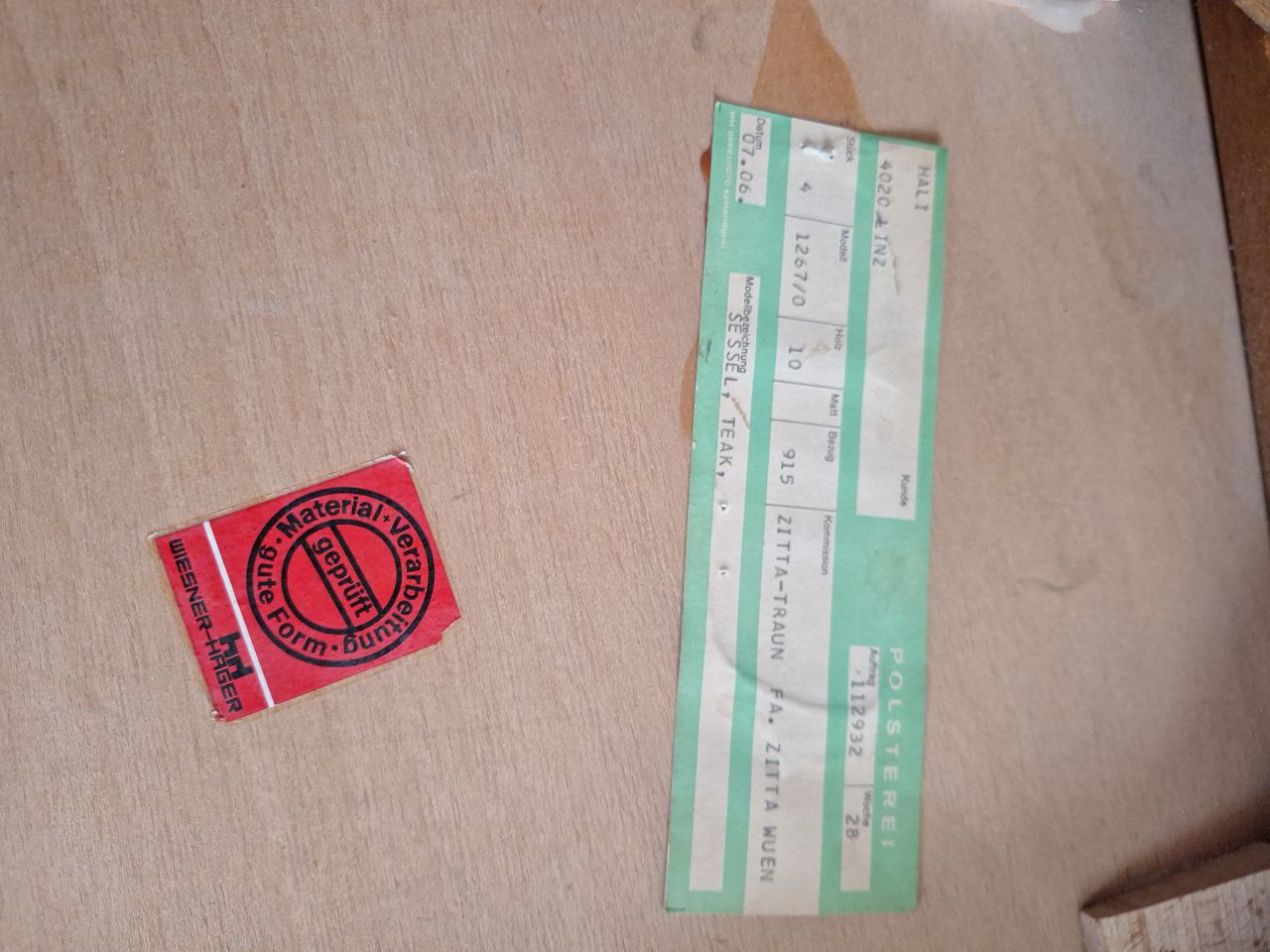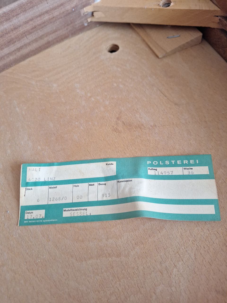 Hersteller: Wiesner & Hager / HALI (Etiketten vorhanden). 6 Stück Teak (warmer rötlich-brauner Ton), 2 Stück Buche (heller Honigton). Original grüner Cordbezug, sehr gut erhalten. Maße ca.: H 84 cm, B 56 cm, T 50 cm, Sitz T 42 cm, Sitzhöhe 45 cm. Stabil, kaum Abnutzung, sofort nutzbar – ideal für Esszimmer, Büro, Café.